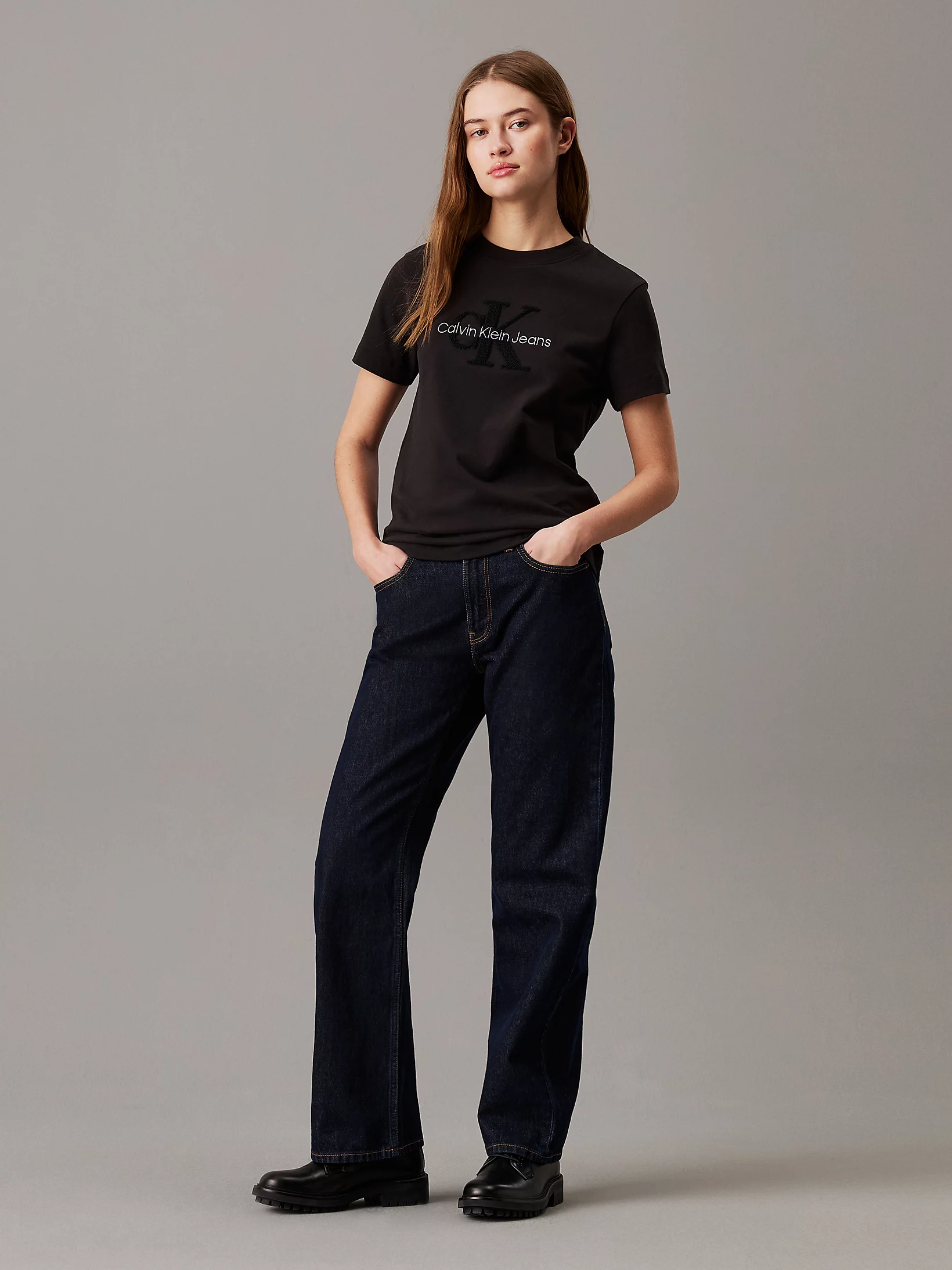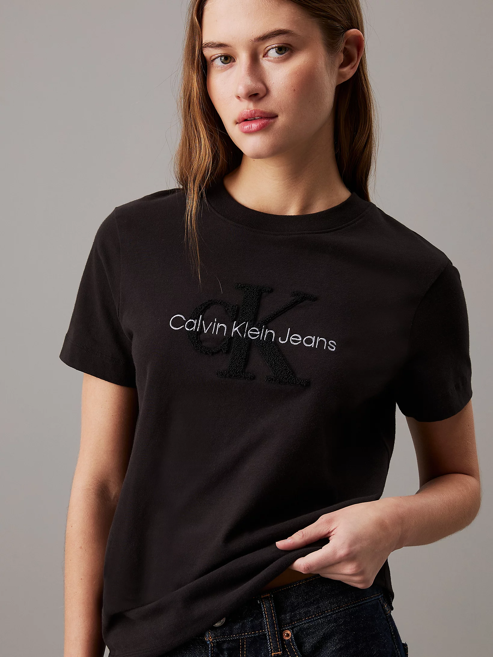• CK siuvinėjimas ant krūtinės