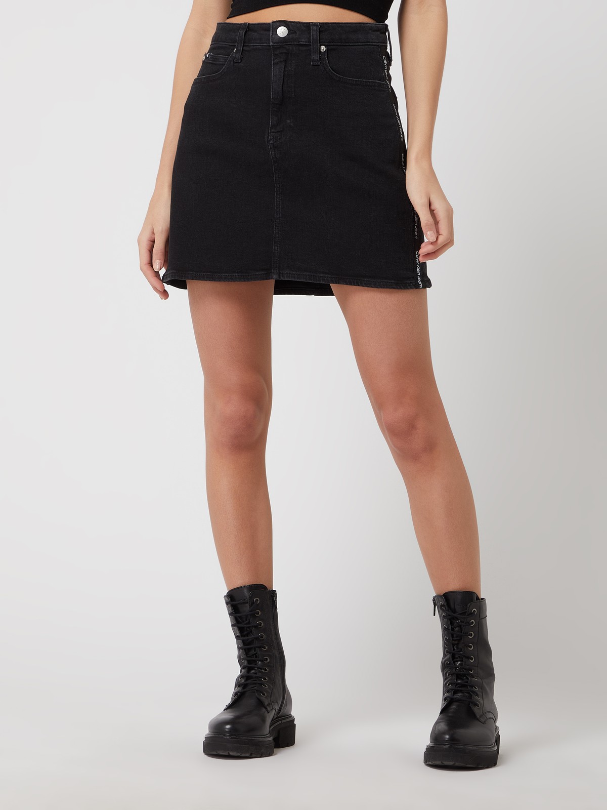 Laisvalaikio sijonas iš Calvin Klein Jeans kolekcijos. Pagamintas iš minkšto džinsinio audinio. Logotipo juostelė sijono šonuose.
