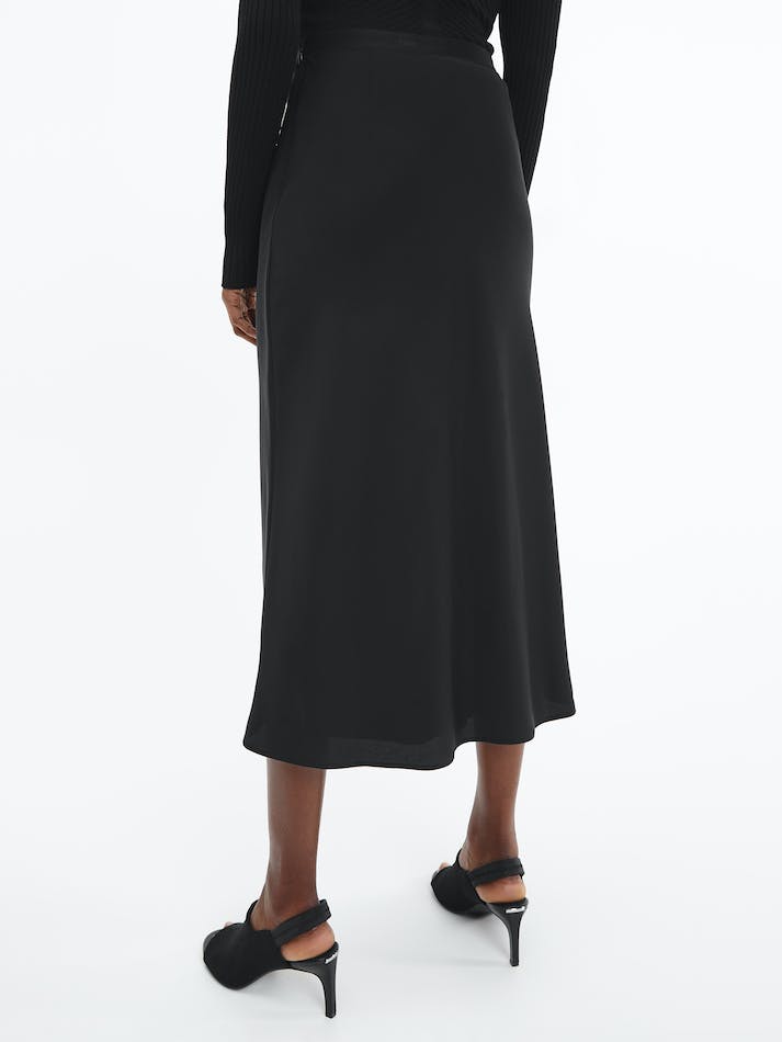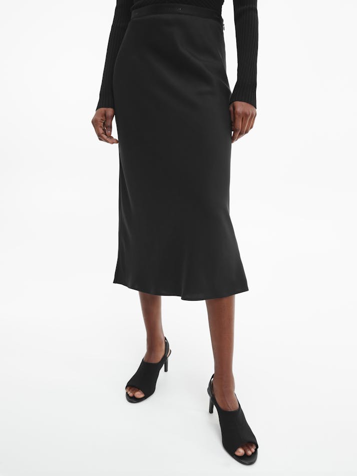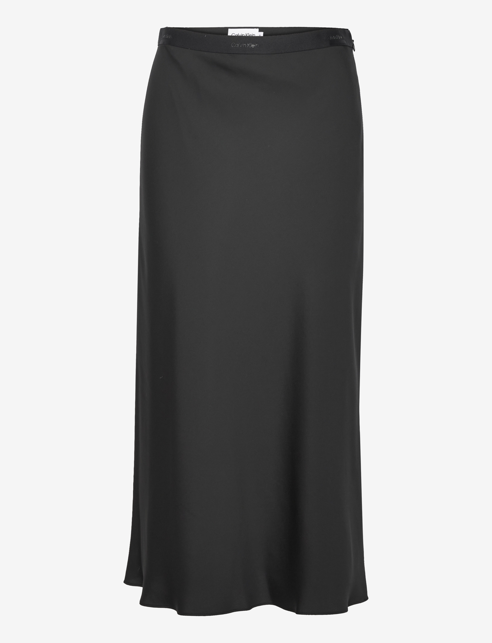 Sijonas iš Calvin Klein kolekcijos. Midi ilgis, prekės ženklo logotipas, vienspalvis, elastingas juosmuo, su pamušalu, užsegamas užtrauktuku, be kišenių.