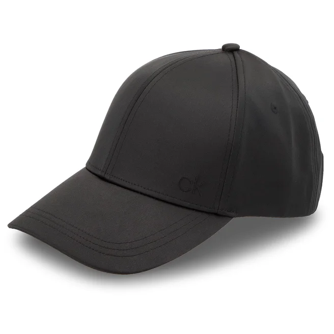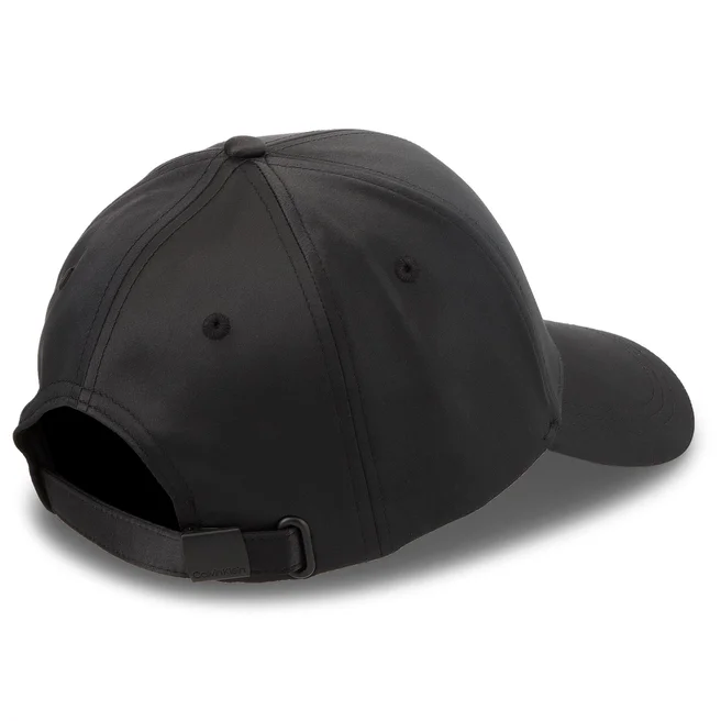 Calvin Klein juoda šiek tiek blizgaus dizaino kepurė su snapeliu. Dydis OS (vieno dydžio), reguliuojamas užsegimas nugaroje. Priekyje siuvinėta maža CK monograma.