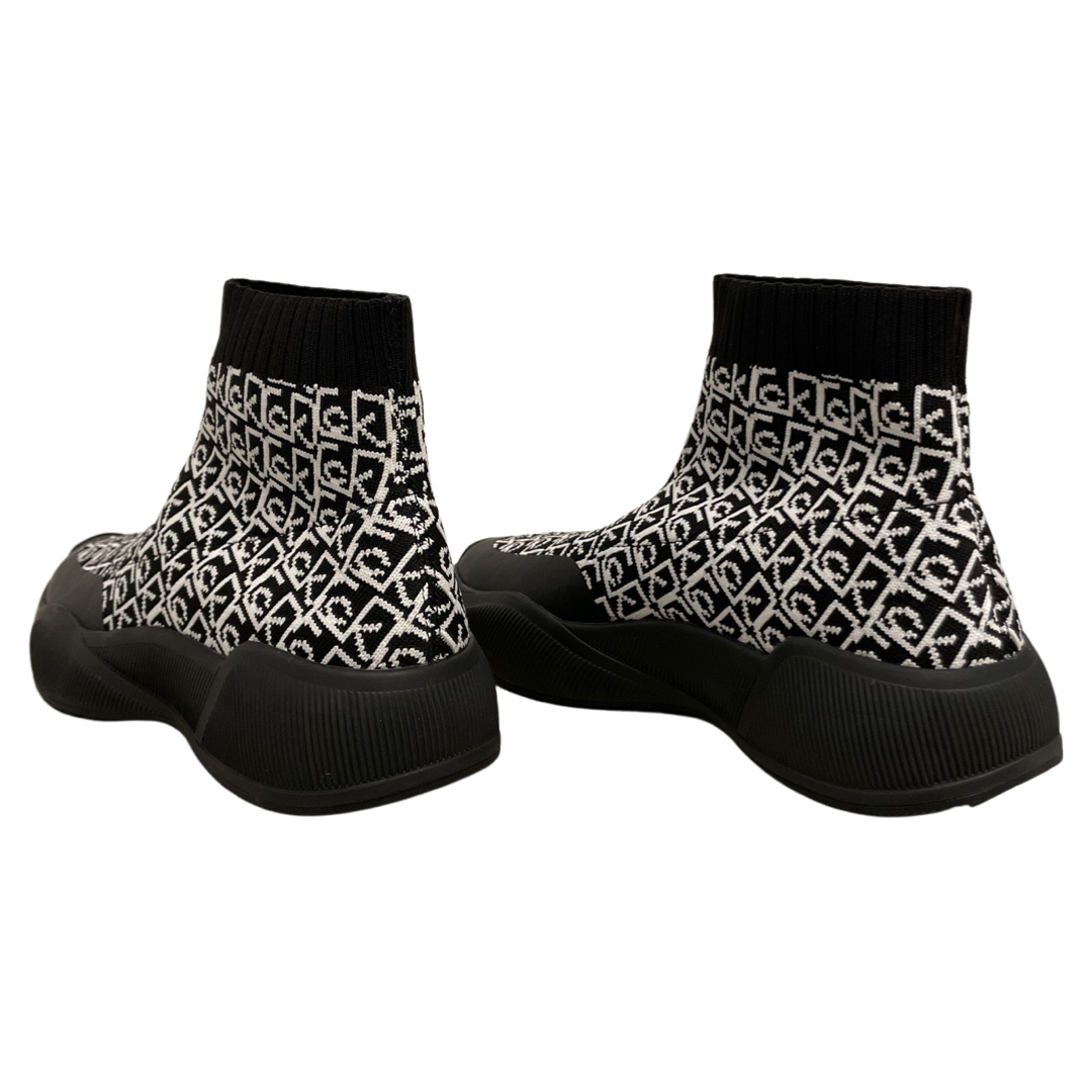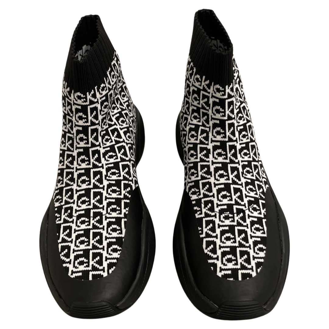 Batai „kojinės“ – patogus ir lengvas modelis iš „Calvin Klein“ kolekcijos. Dviejų spalvų derinys – baltos ir juodos, austas raštas per viršutinę dalį papildytas „Calvin Klein“ prekės ženklu. Pagamintas iš aukštos kokybės ir patvarios medžiagos. Batų nosis apvali. Pado storis 3 cm. Bendras bato aukštis 15 cm. Batų padas pagamintas iš aukštos kokybės sintetinės medžiagos (gumos), vidinis vidpadis išsiima ir pagamintas iš medžiagos. Abiejų batų svoris 500 g. Puikiai papildys kasdieninę ir sportišką išvaizdą.