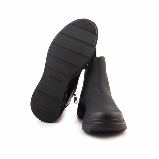 Calvin Klein visiškai juodi odiniai batai su aukštu guminiu padu.
