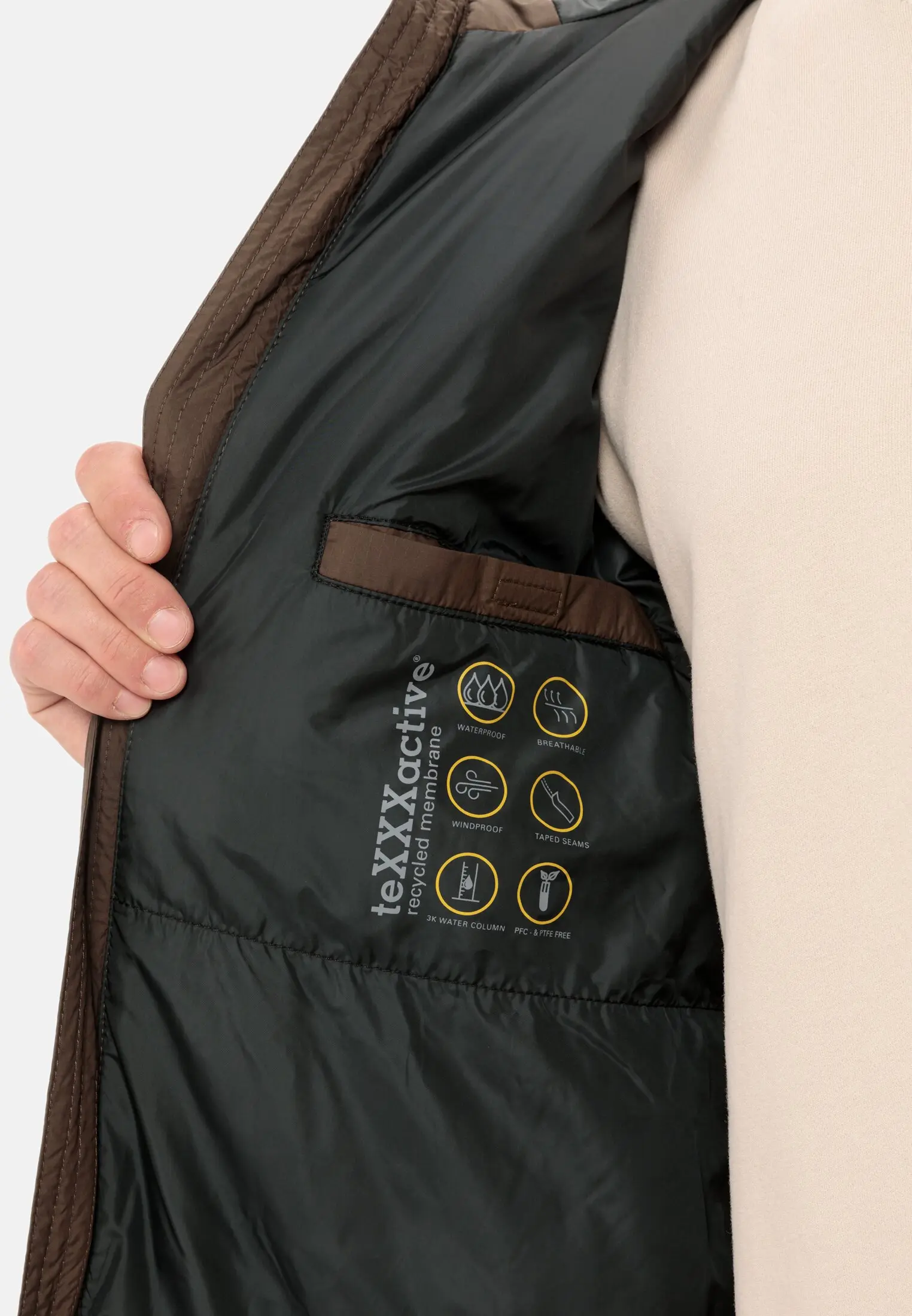 Lengva teXXXactive® dygsniuota striukė iš vandeniui ir vėjui atsparaus, kvėpuojančio funkcionalaus audinio. Be 3000 vandens stulpelio įvertinimo, striukėje yra klijuotos kameros ir siūlės, užtikrinančios papildomą apsaugą šlapiomis ir lietingomis sąlygomis. Kitos praktiškos šios aukštųjų technologijų striukės savybės yra krūtinės kišenės, šoninės kišenės su užtrauktuku ir šviesą atspindintis teXXXactive® raštas nugaroje. Ant kairės rankovės Camel Active logotipo spaudas.