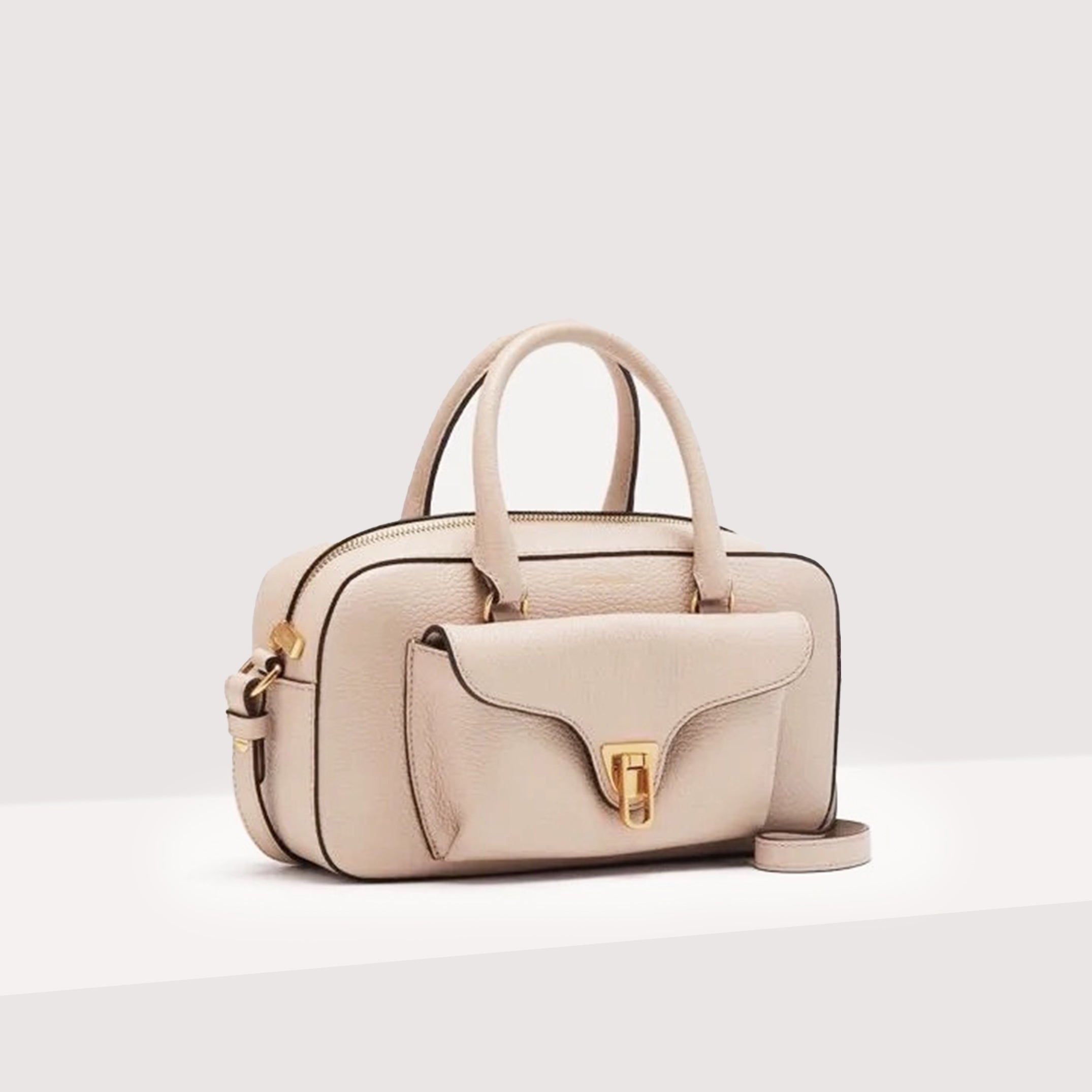 Coccinelle Beat rankinė tinka prie bet kokios aprangos, papildytas išorine kišene su unikaliu metaliniu kirtiklio formos užsegimu.