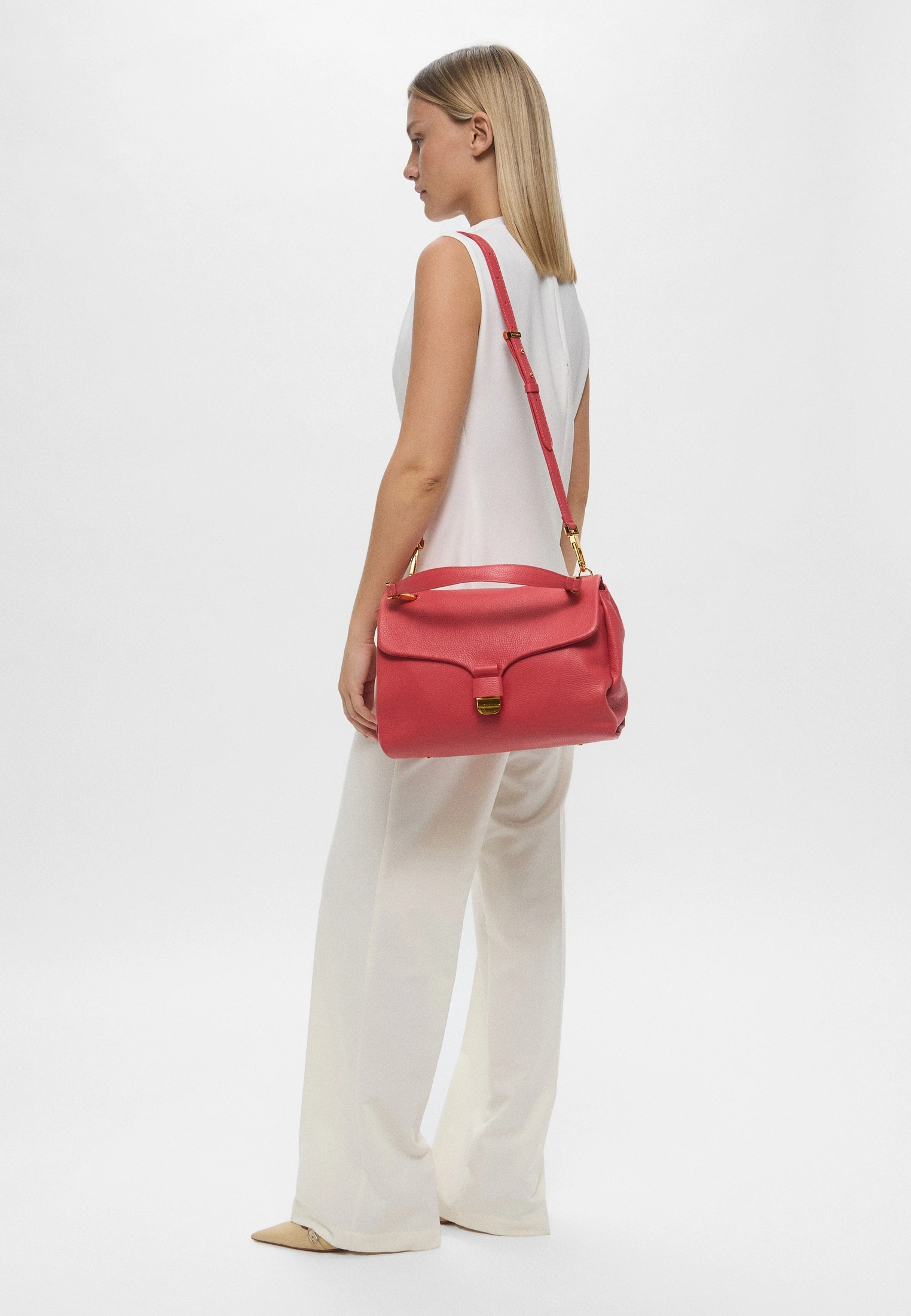 • Reguliuojamas ir nuimamas odinis pečių dirželis