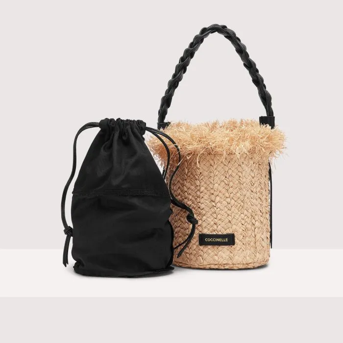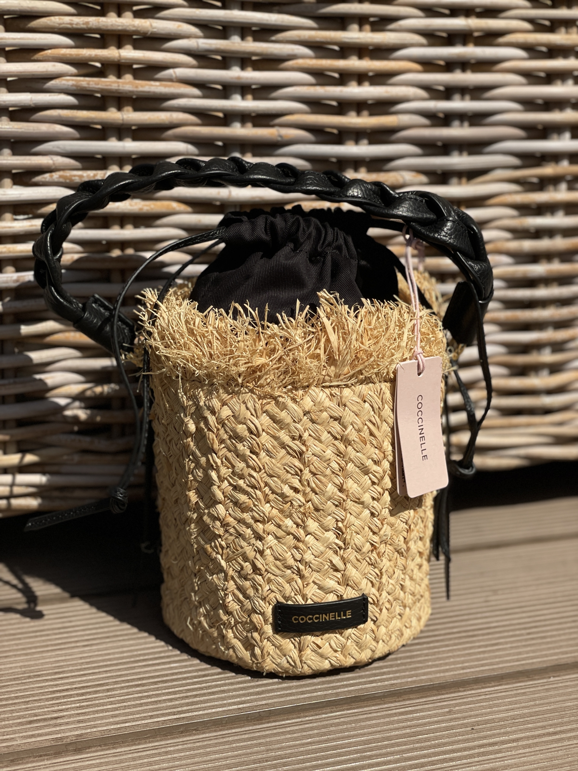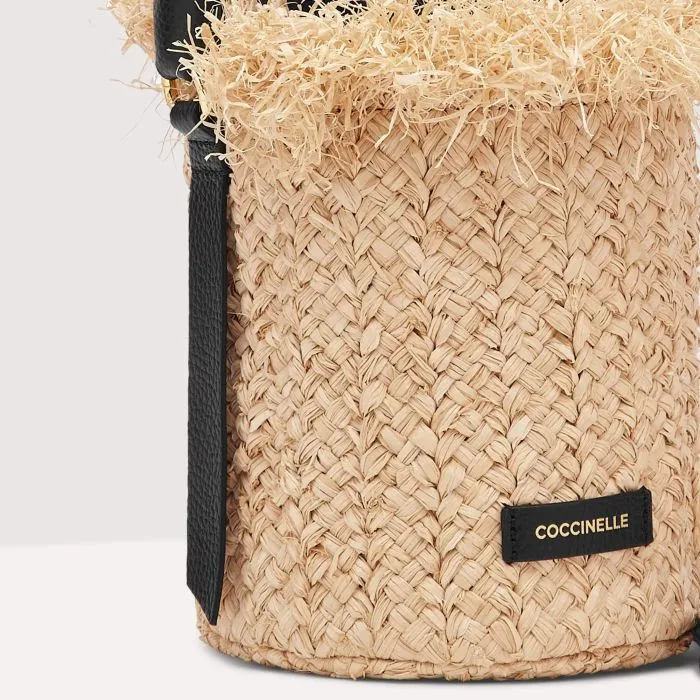 Pinta odinė rankena suteikia Coccinelle rafijos modeliams moteriškumo. Šis modelis yra rankų darbo, audžiant natūralius rafijos siūlus ant iš anksto sukonstruotų norimos formos staklių.