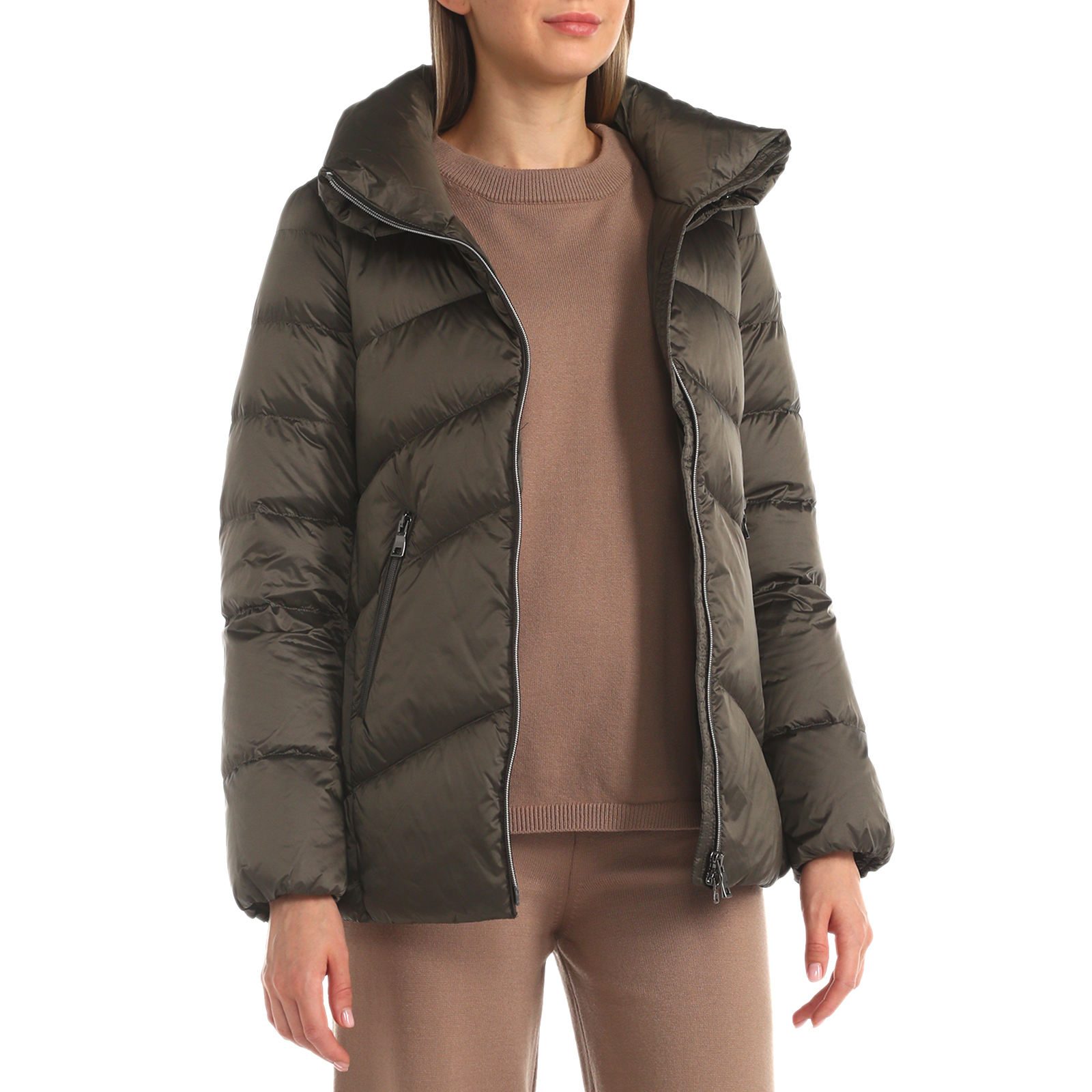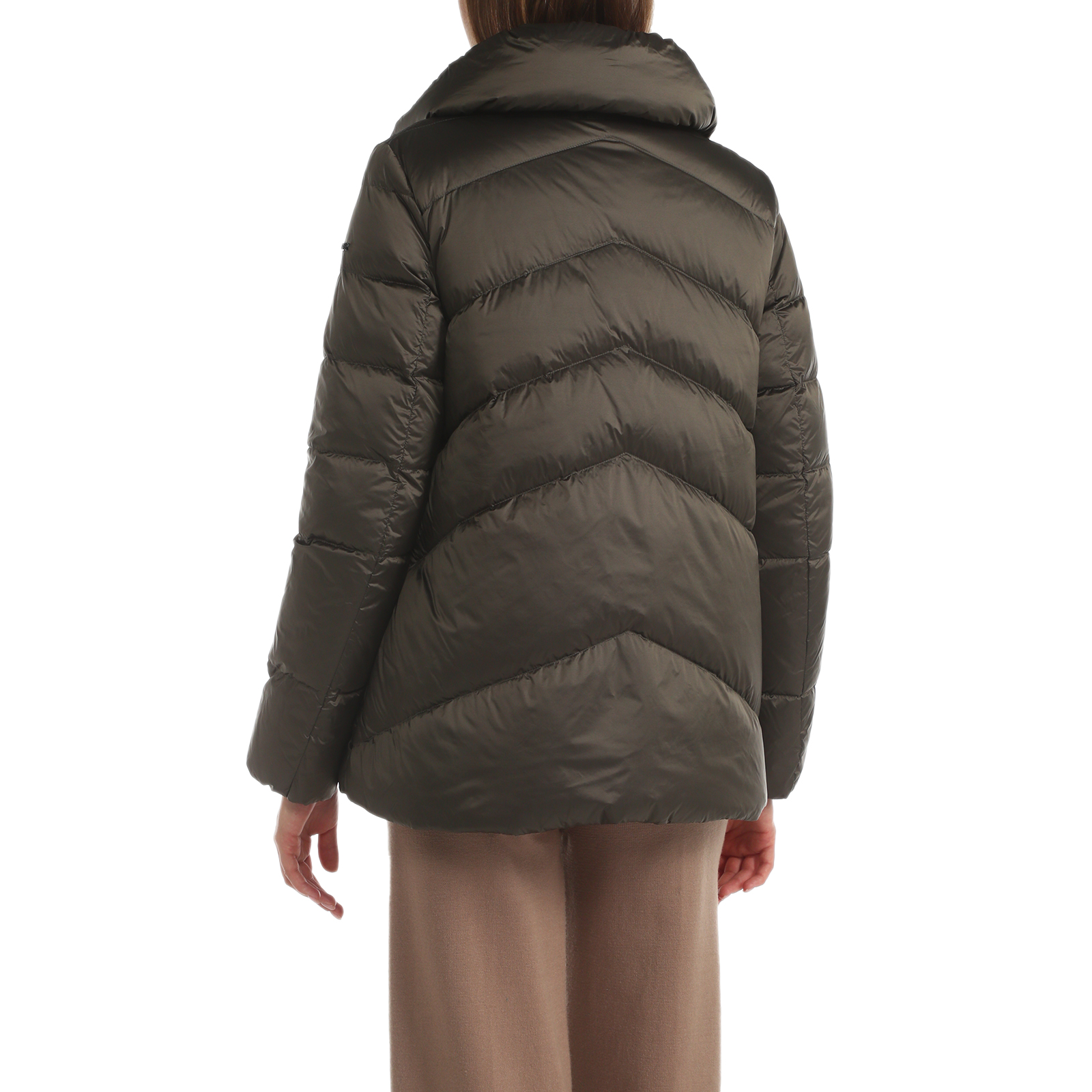 Striukė Adrya platėjančio silueto. Pagaminta iš itin lengvo nailono su tvariu XDown paminkštinimu iš regeneruotų pūkų ir išskirtine patentuota Geox kvėpuojančia sistema.