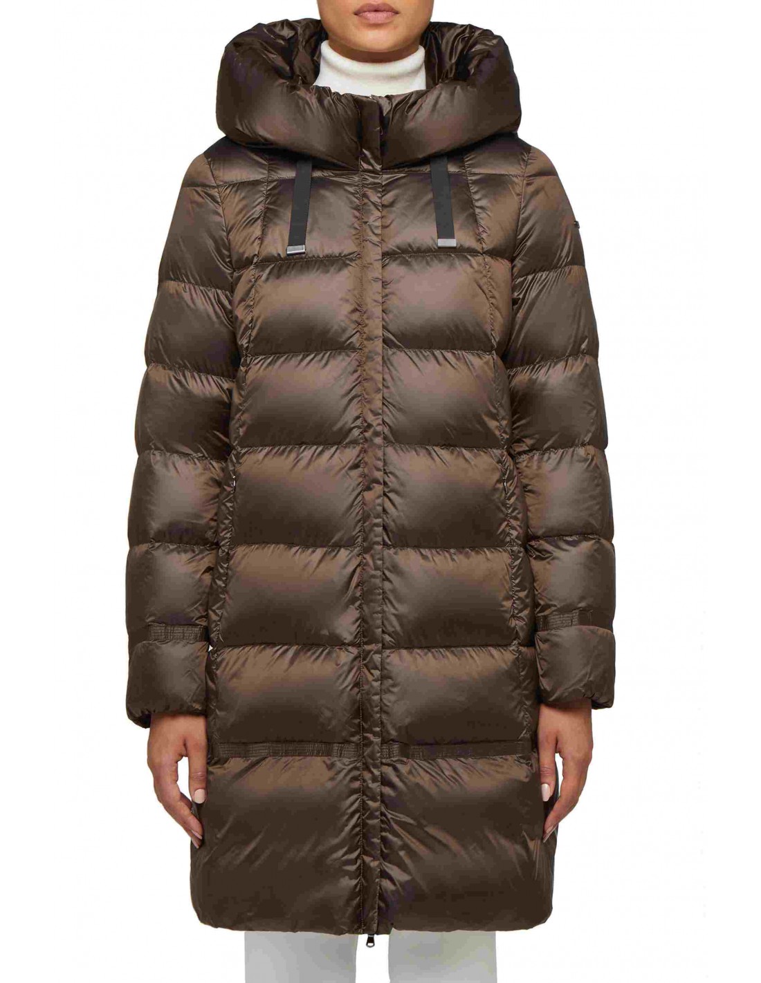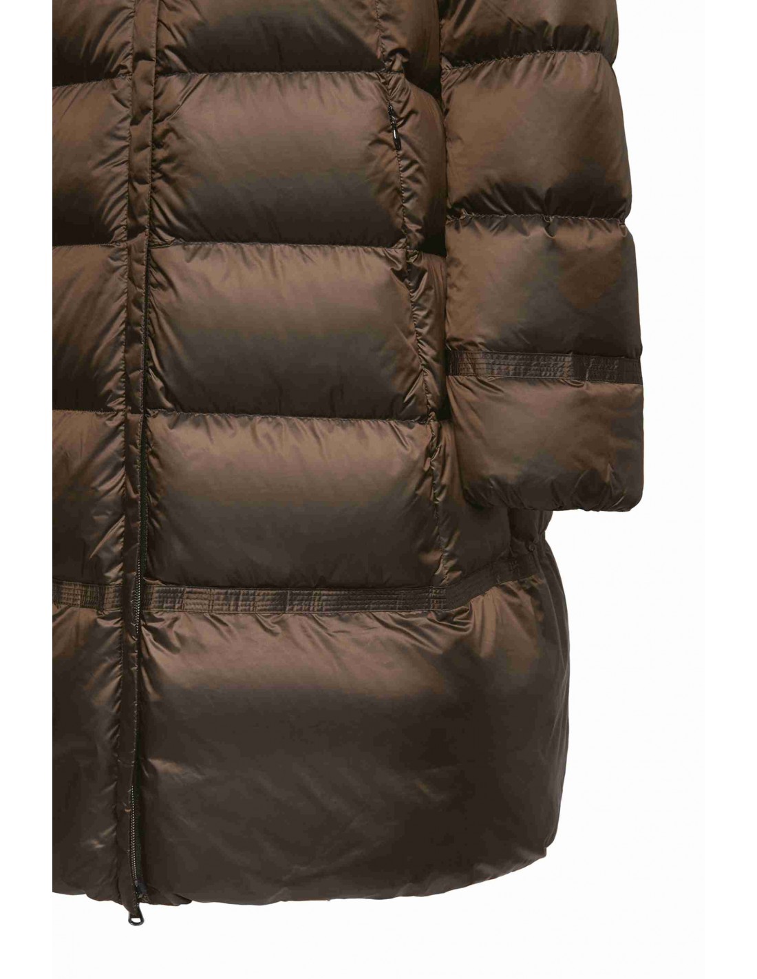 Moteriška ilga dygsniuota striukė. Pagaminta iš specialių vandeniui ir vėjui atsparių audinių, užtikrinančių efektyvią hidroizoliaciją. Striukė pagaminta iš poliamido ir užpildyta ančių pūkais. Modelis aprūpintas dviem paslėptomis šoninėmis kišenėmis ir nenuimamu gobtuvu. Užsegimas dvipusiu užtrauktuku. Šiame modelyje panaudota „Geox Respira“ technologija, kuri dėl vidinio sluoksnio ir juostelių ant pečių pagerina pralaidumą orui. Ši striukė nešiojimo metu palaiko kūno temperatūrą. Rinkitės šaltajam sezonui.