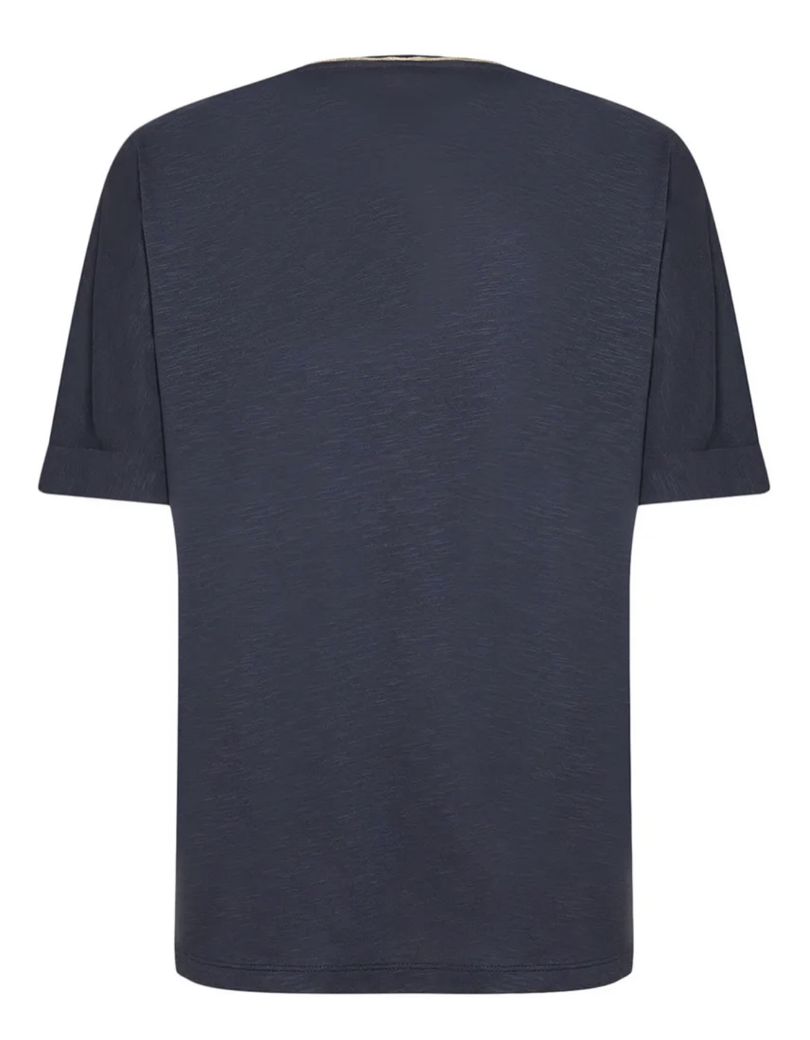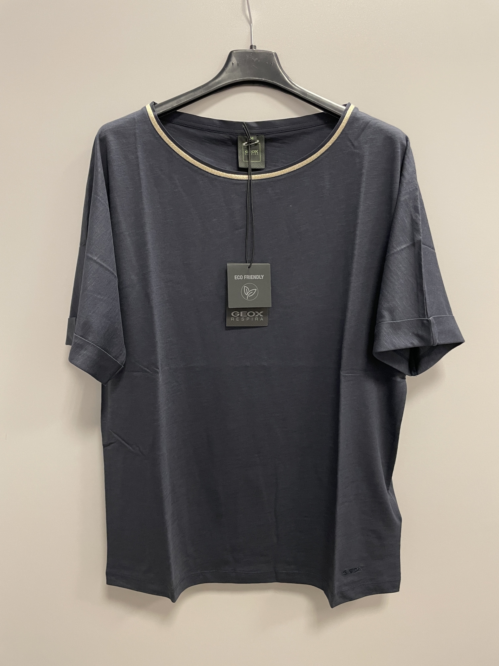 Moteriški marškinėliai apvalia apykakle ir liurekso apdaila. Pagaminti iš plonos ir kvėpuojančios ekologiškos medvilnės audinio.