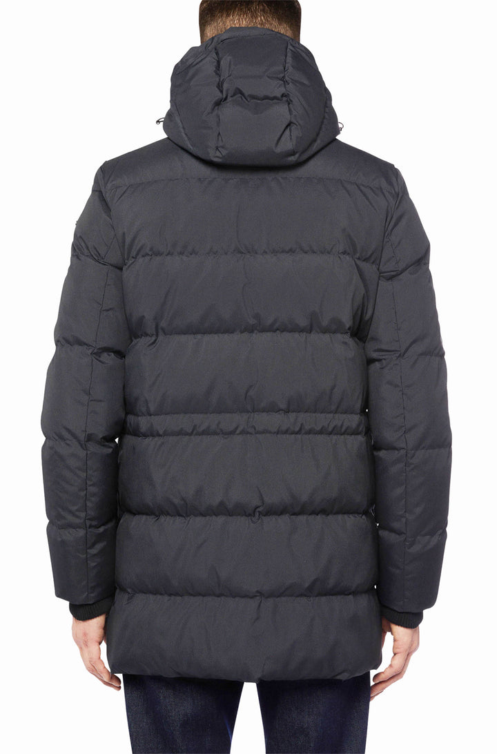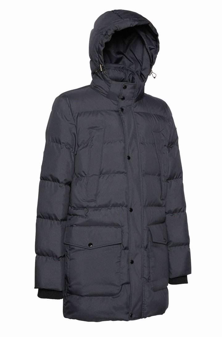 Vyriška paminkštinta ilga striukė, puikiai tinkanti šaltam žiemos orui.