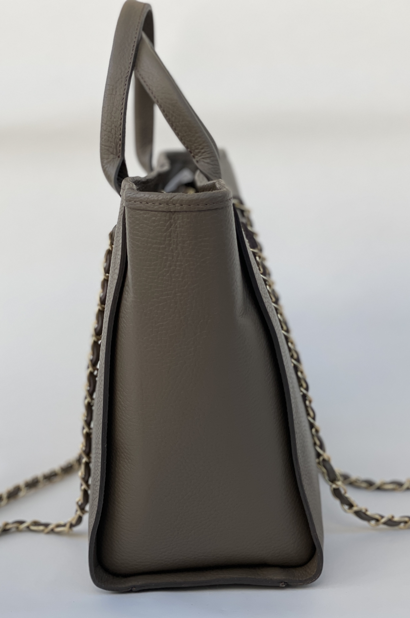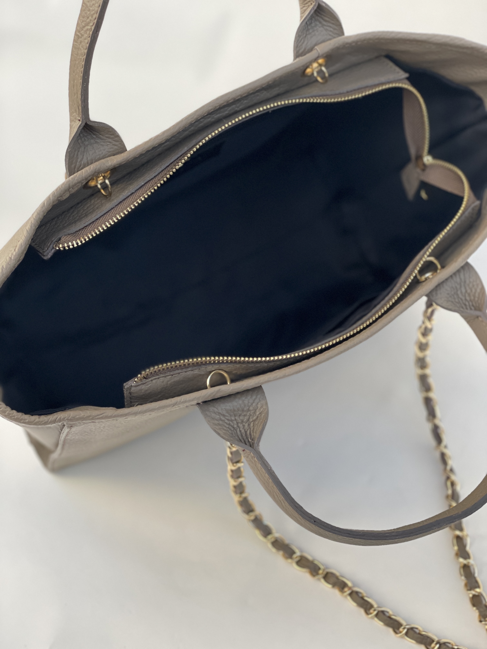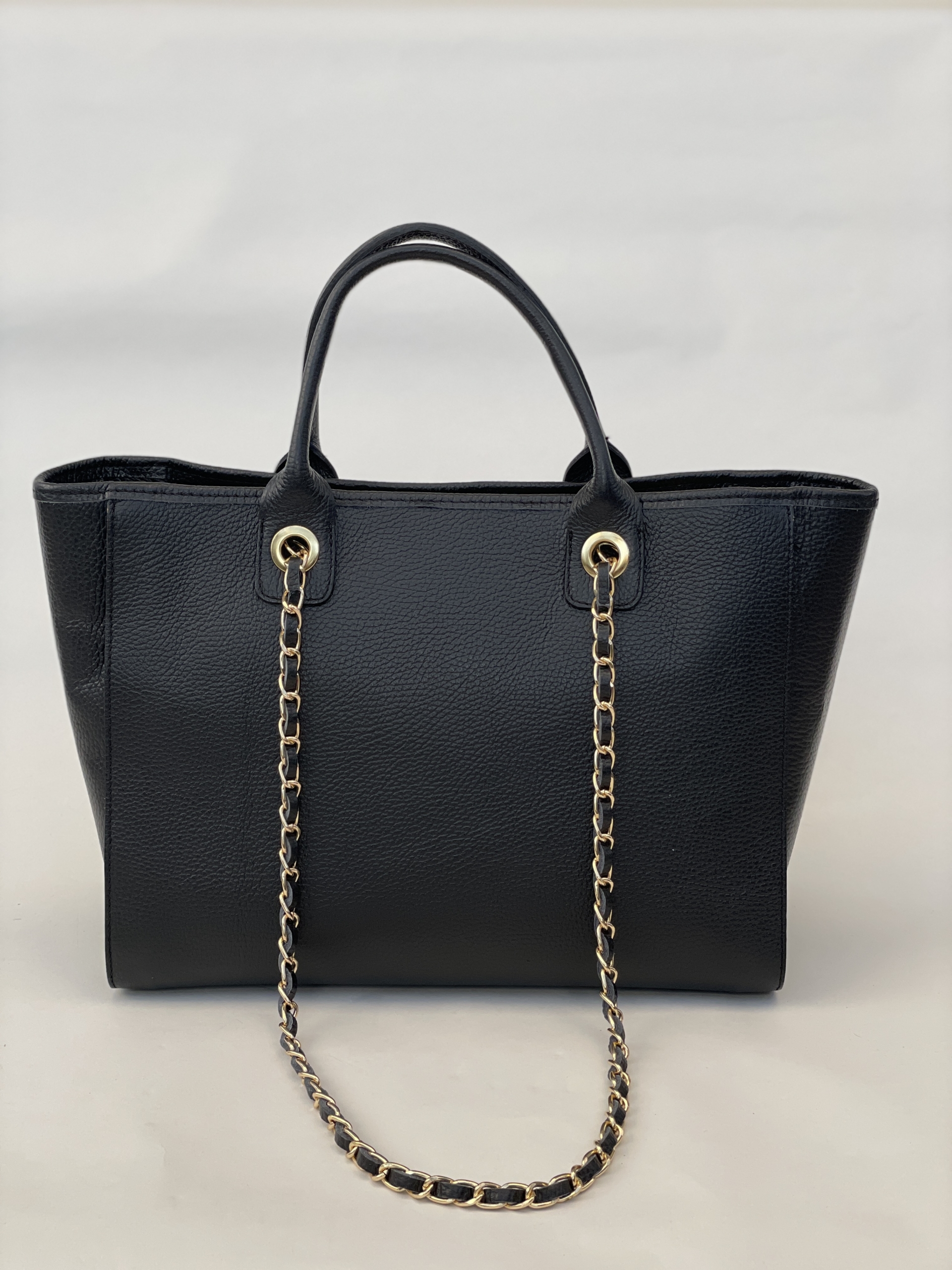Šis stilius tinkantis kasdieniam gyvenimui. Didelė rankinė uždaroma užtrauktuku. Funkcionali rankinė su 2 odinėmis rankenomis ir kontrastingomis ilgomis dekoruotomis rankenomis. Erdvus pagrindinis skyrius talpina A4 formatą. Visos metalinės detalės auksinio atspalvio.