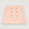 Dvi eilės po tris auksinio atspalvio metalines sagas su „Maje“ logotipu priekyje.