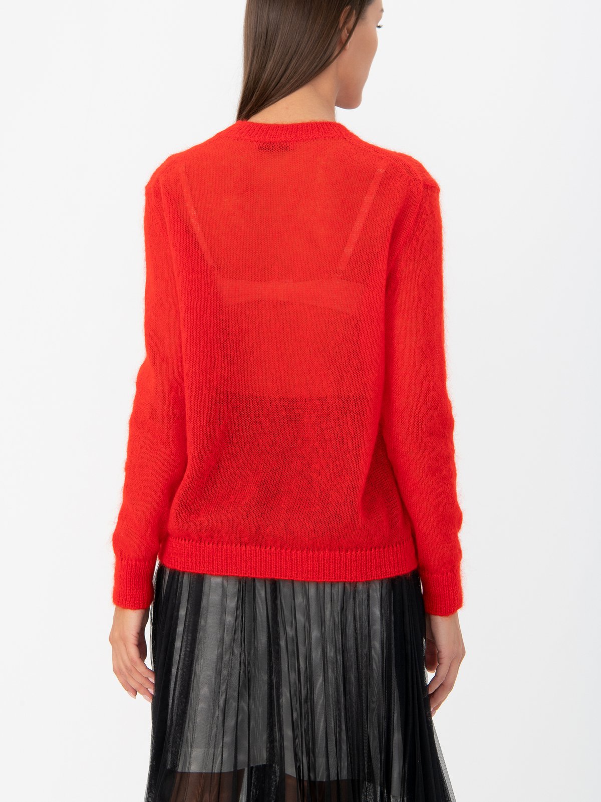Aukštos kokybės moteriškas megztinis apvalia apykakle. Pagamintas iš plonos vilnos mišinio. Elastingi rankogaliai ir apvadas. Gražus raštas, laisvas prigludimas, nuleistos pečių siūlės.