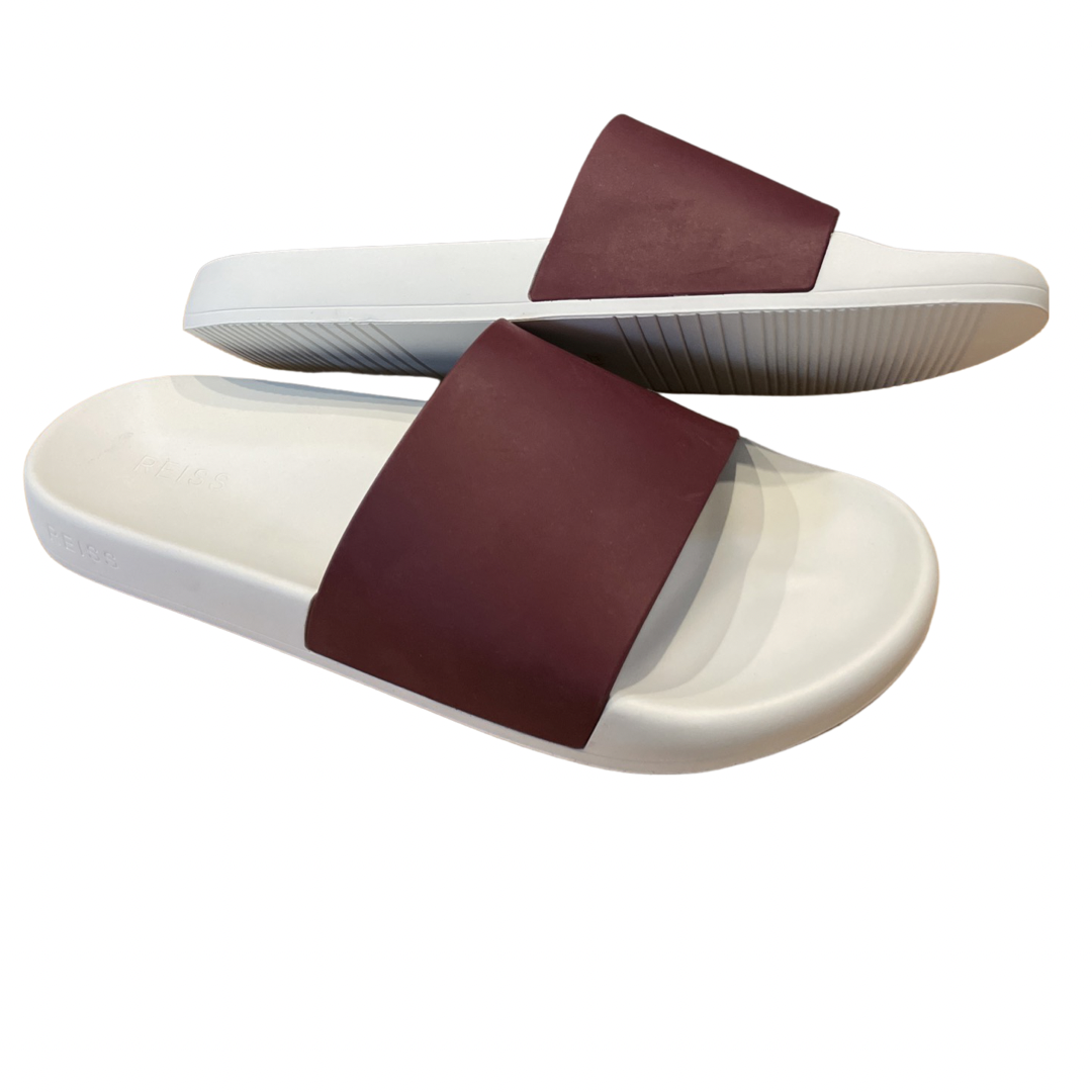 Paplūdimio šlepetės pagamintos iš aukštos kokybės sintetinės medžiagos – gumos. Padas – baltas, viršus – bordo. Rekomenduojame siauresnei kojai.