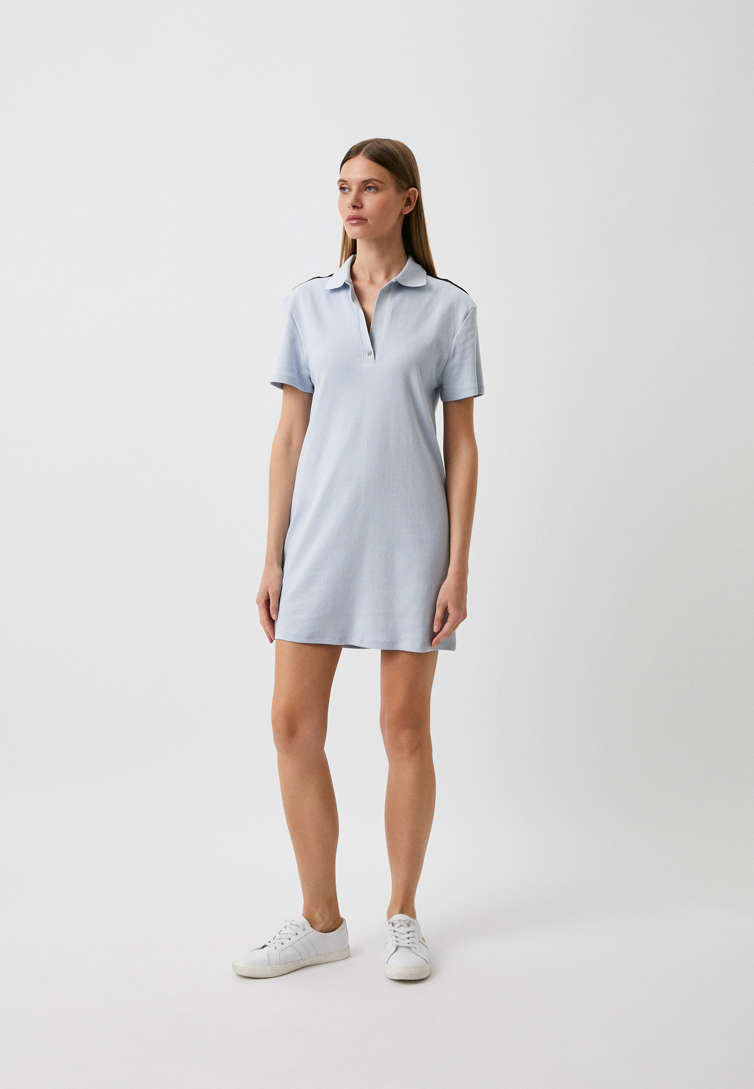 Marškinėlių tipo suknelė polo apykakle.