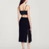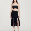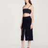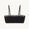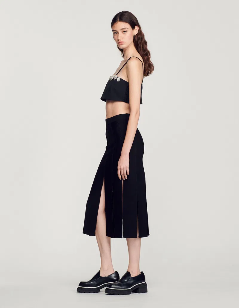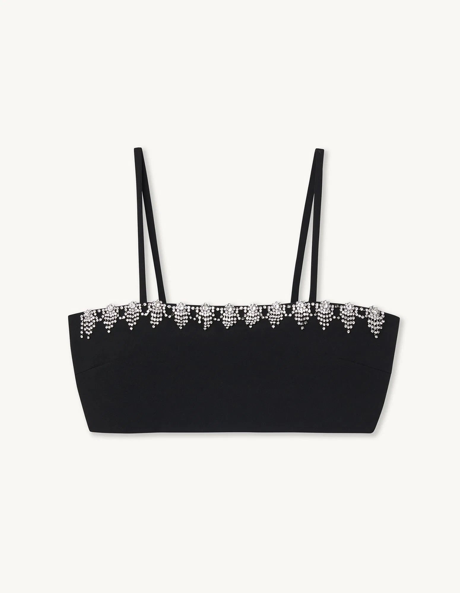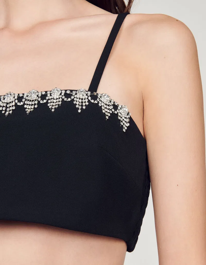 Top’as siauromis petnešėlėmis ir cirkonio apdaila aplink iškirptę.