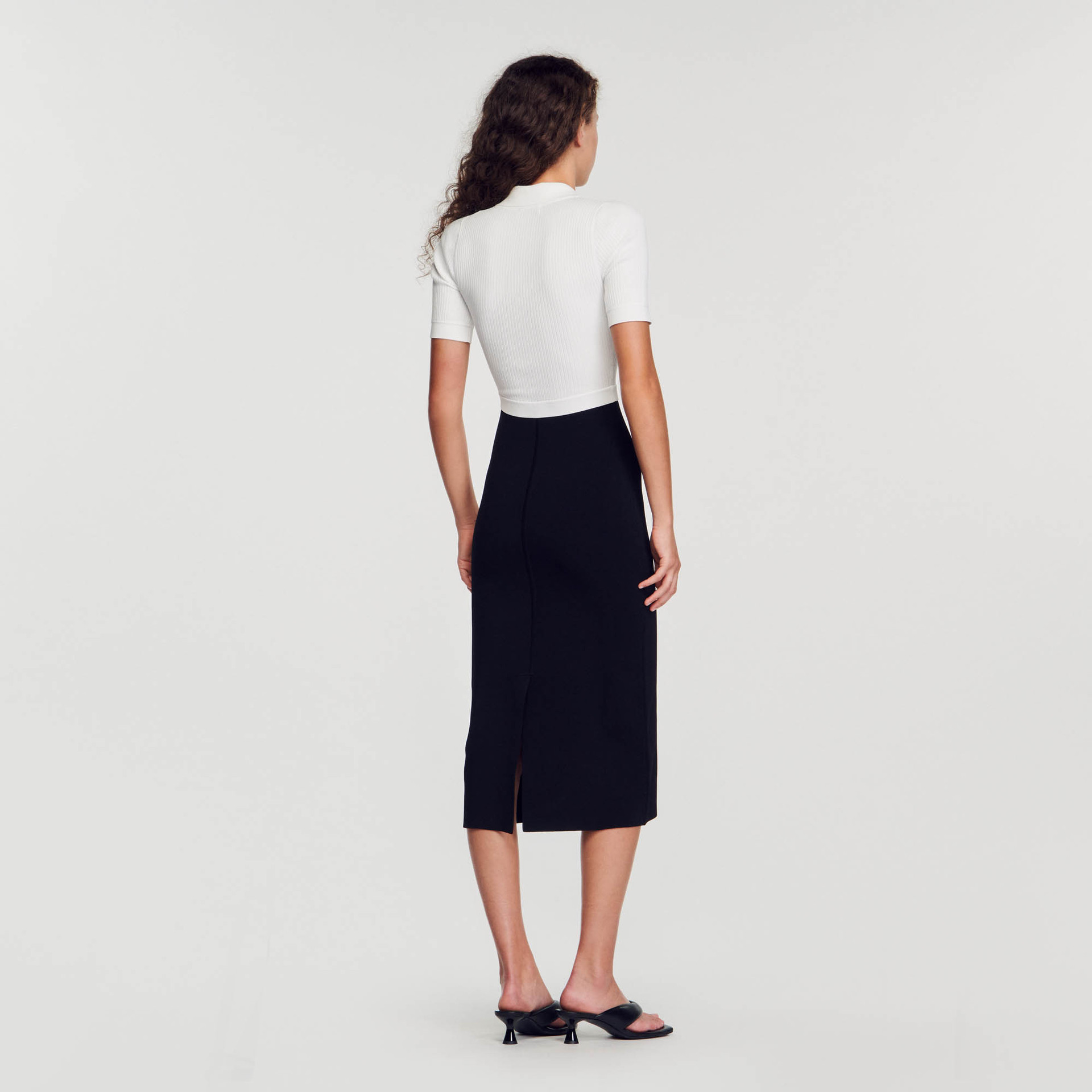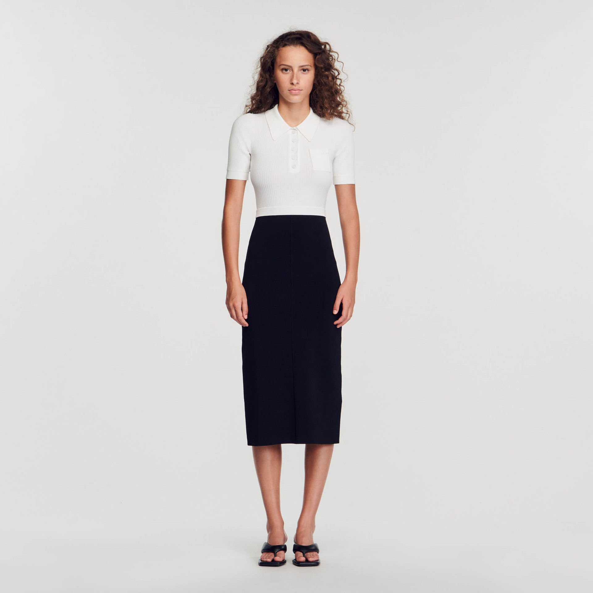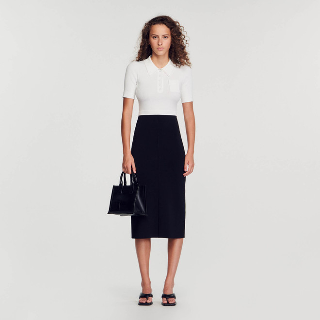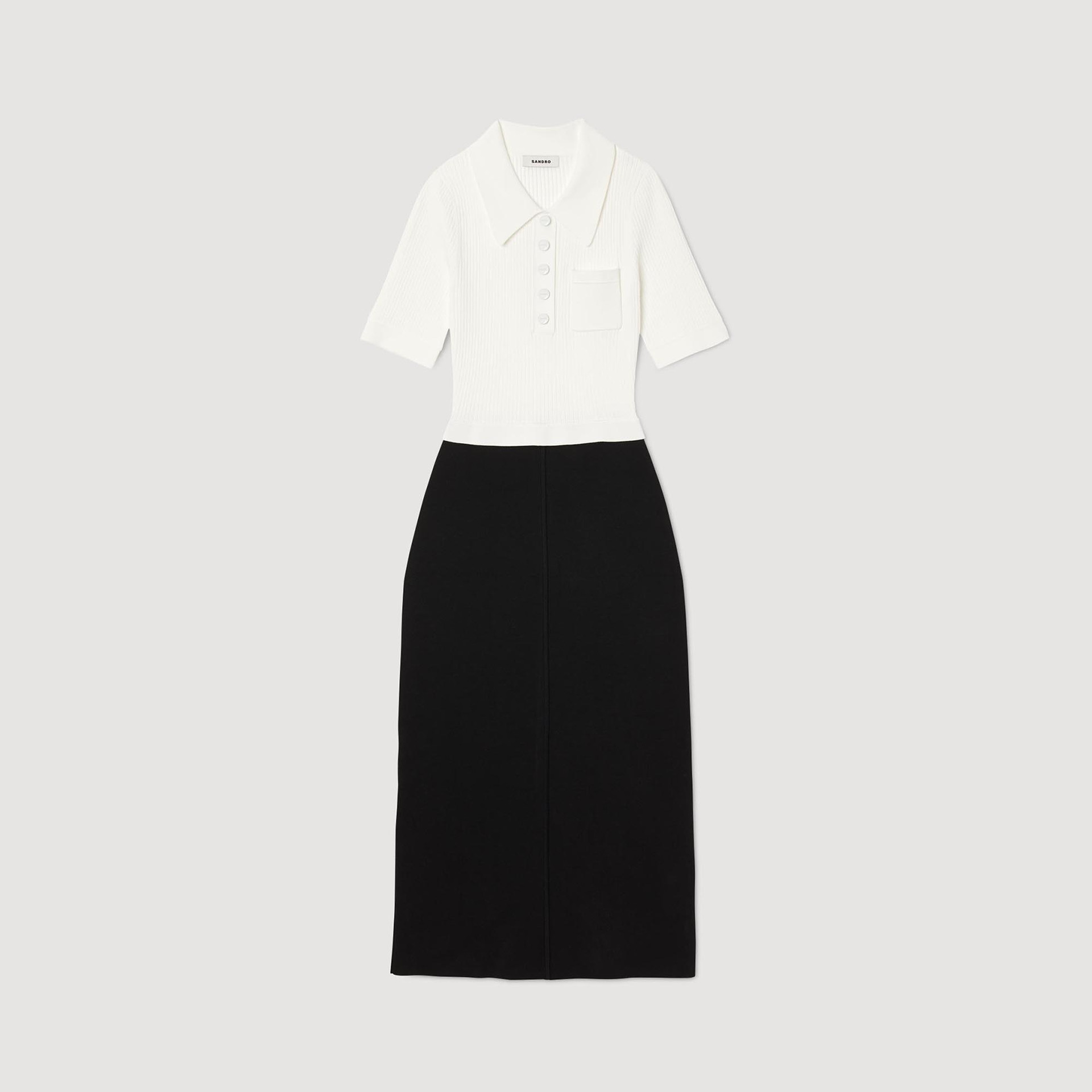 • Dvispalvė megzta midi suknelė su polo stiliaus viršumi