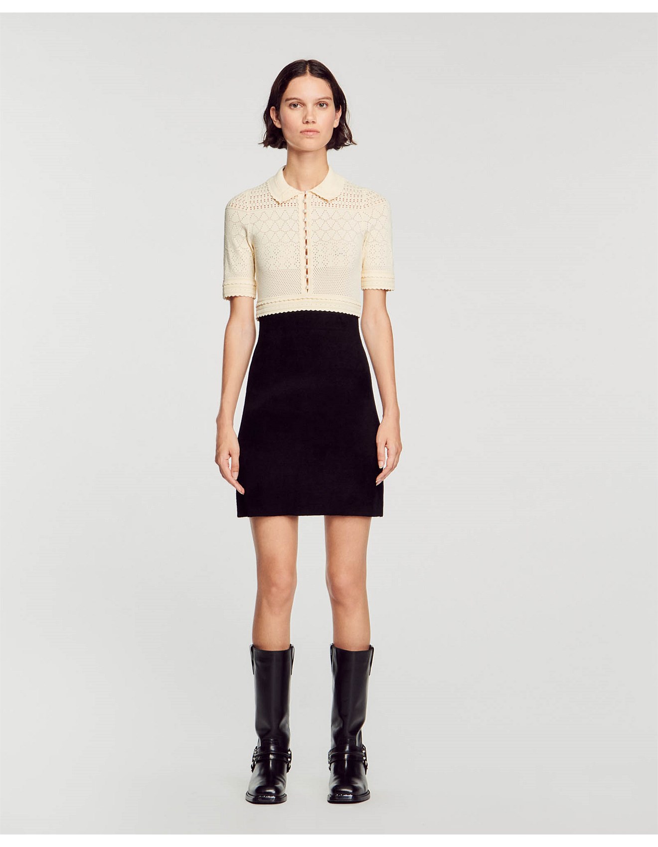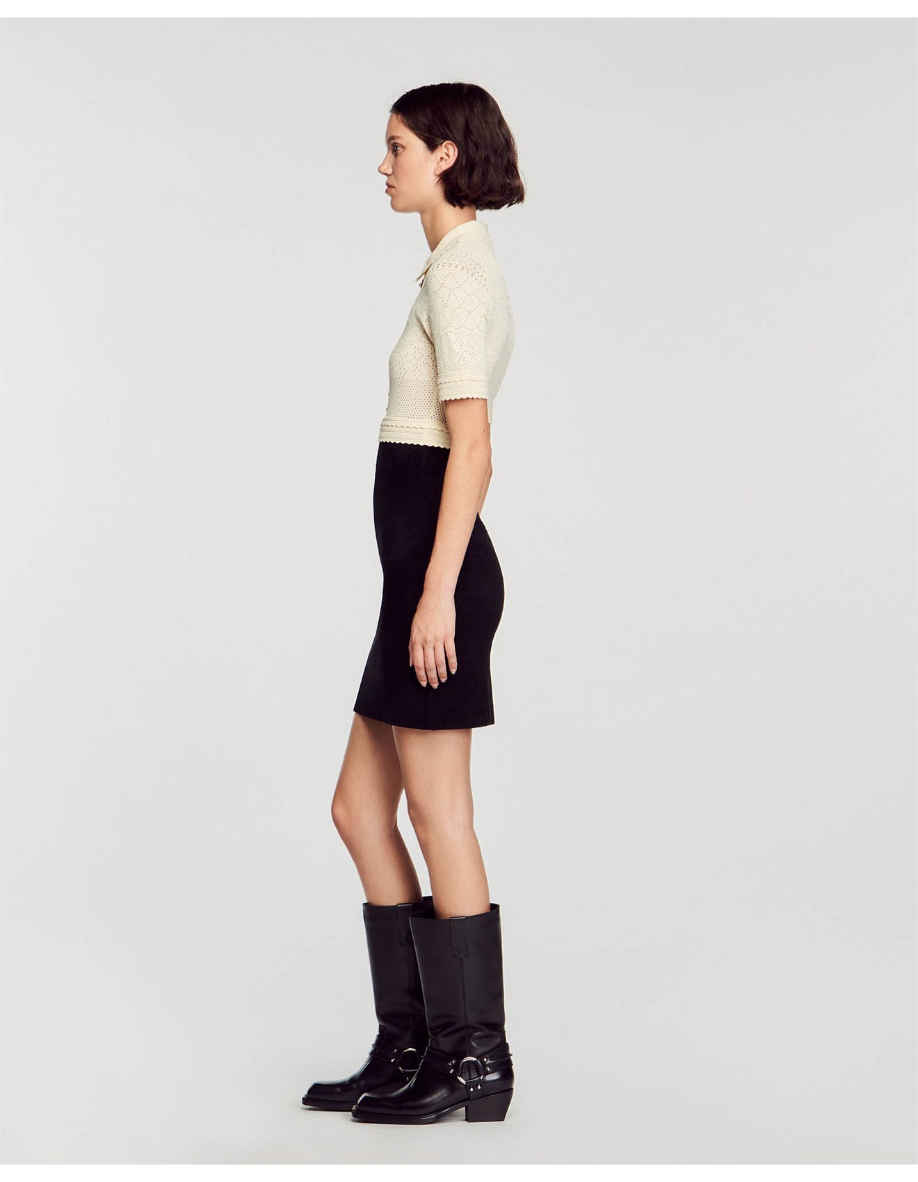 Pagrindinis audinys apatinėje dalyje: 52% viskozė, 47% poliamidas, 1% elastanas.
