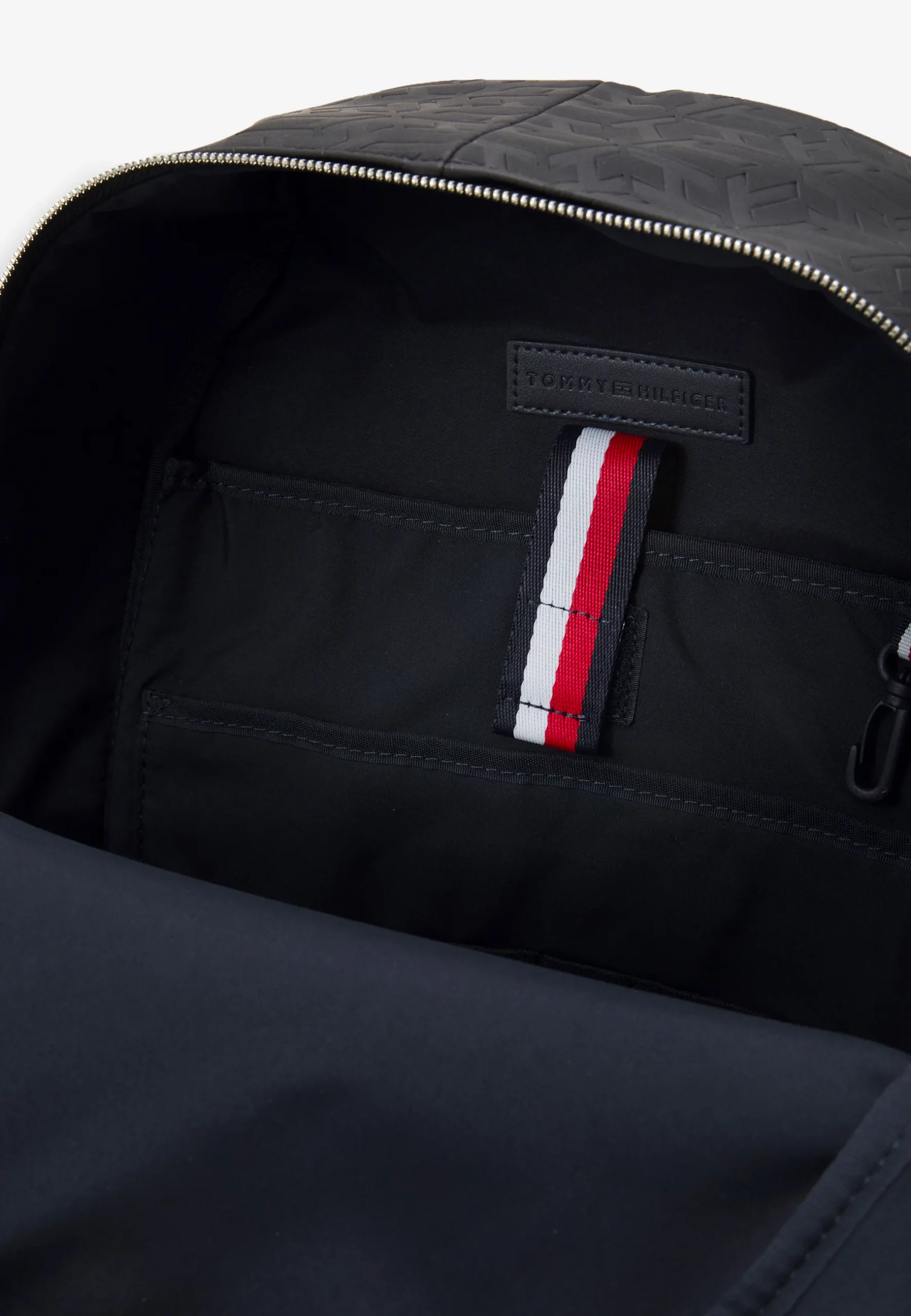 Monograminė reljefinė kuprinė žavi aukštos kokybės prekės ženklu – nuo gilaus reljefinio monogramos  Tommy Hilfiger rašto iki elegantiško firminio logotipo priekyje. Pakanka vietos dokumentams, nešiojamam kompiuteriui ir aplankams. Kuprinę galima atidaryti 2 krypčių užtrauktuku.