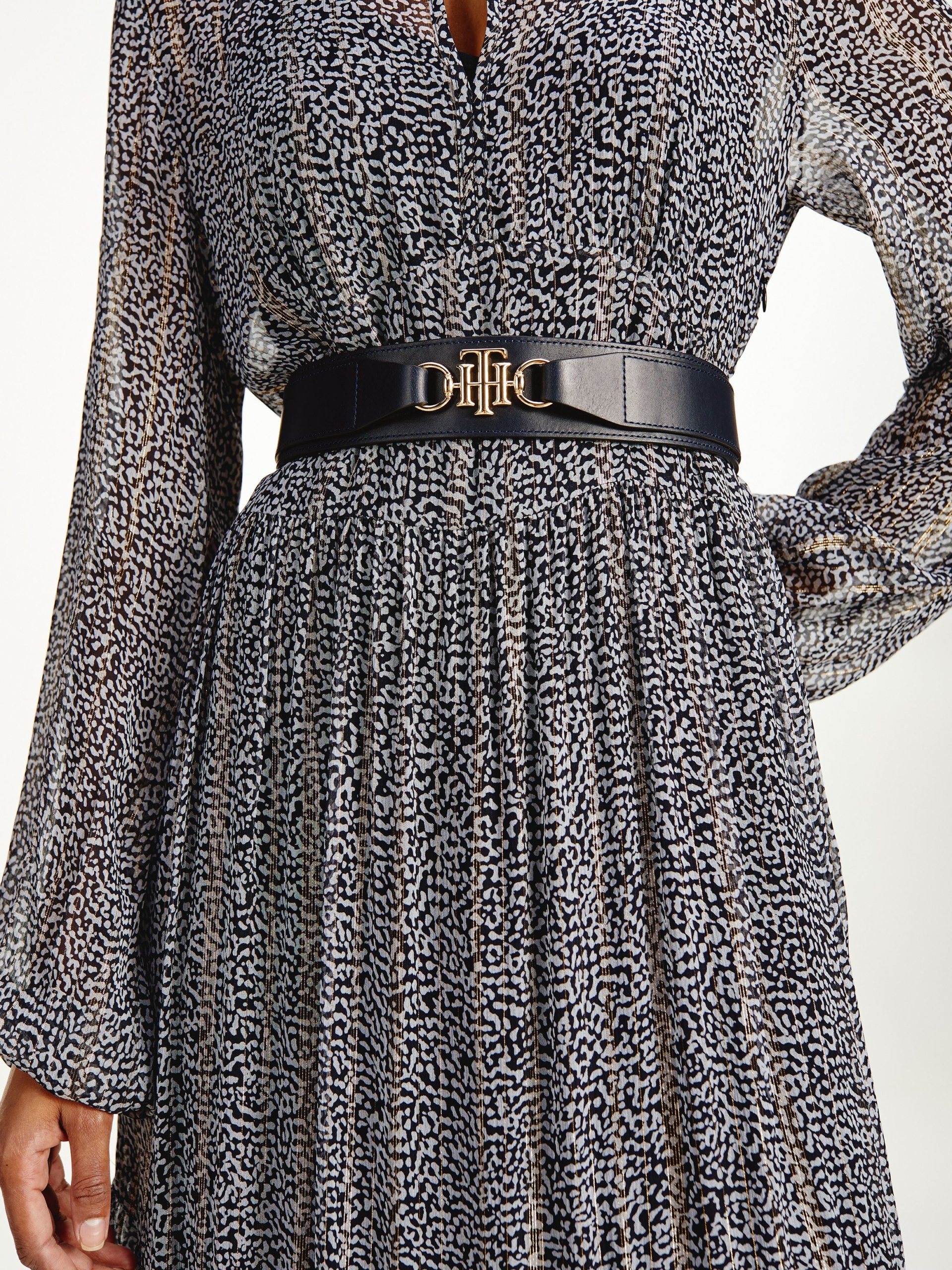Papildykite proginių drabužių komplektus šiuo lygiu, plačiu odiniu diržu TH sagtimi.