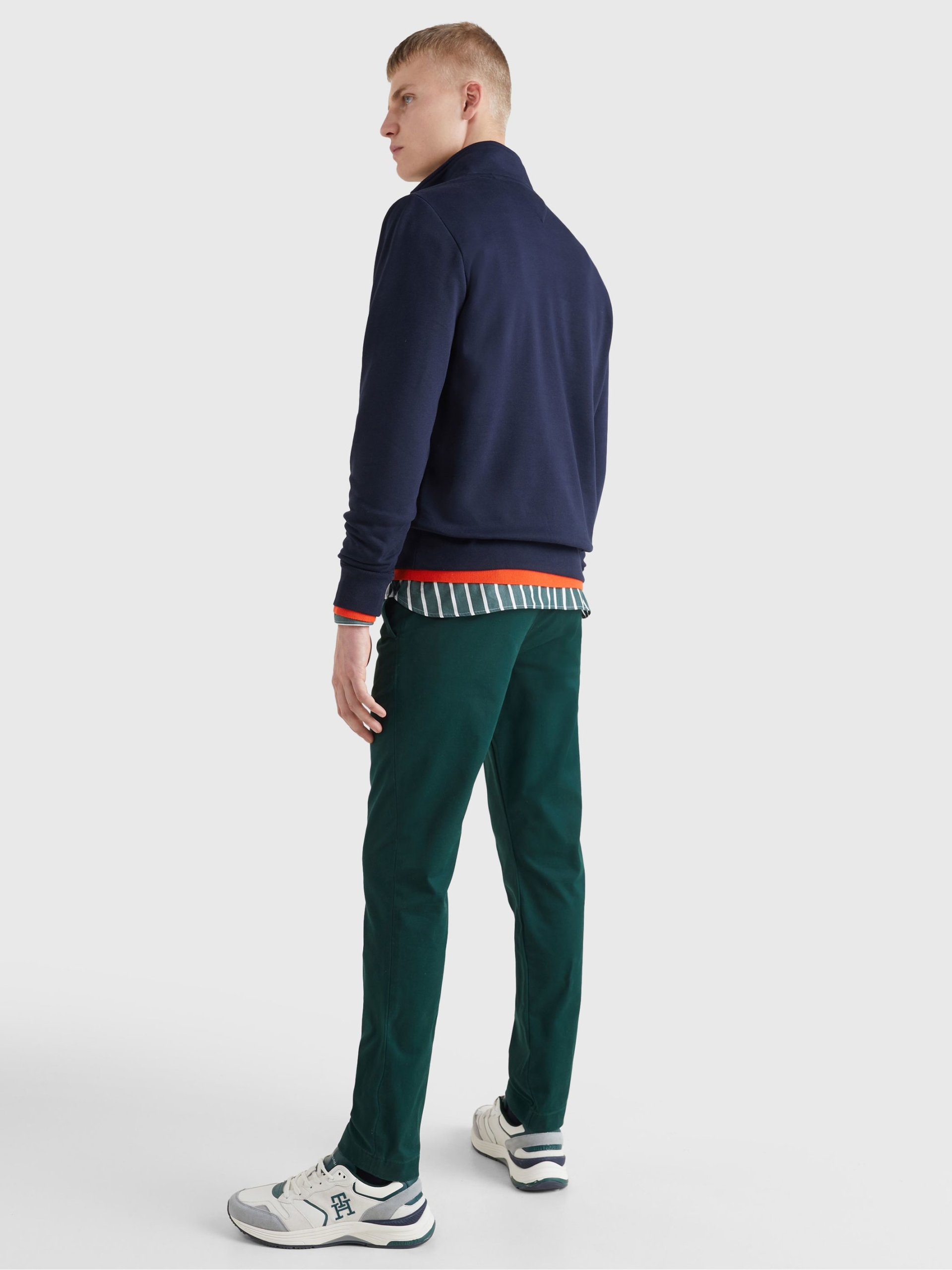 Šis džemperis aukštu kaklu ir ilgomis rankovėmis. Minkštas ir patogus organinės medvilnės mišinio audinys su pūkeliu. Priekyje pusinis užtrauktukas. Kengūros kišenė. Siuvinėtas logotipas priekyje. Vėliavėlės siuvinėjimas ant rankovės.
