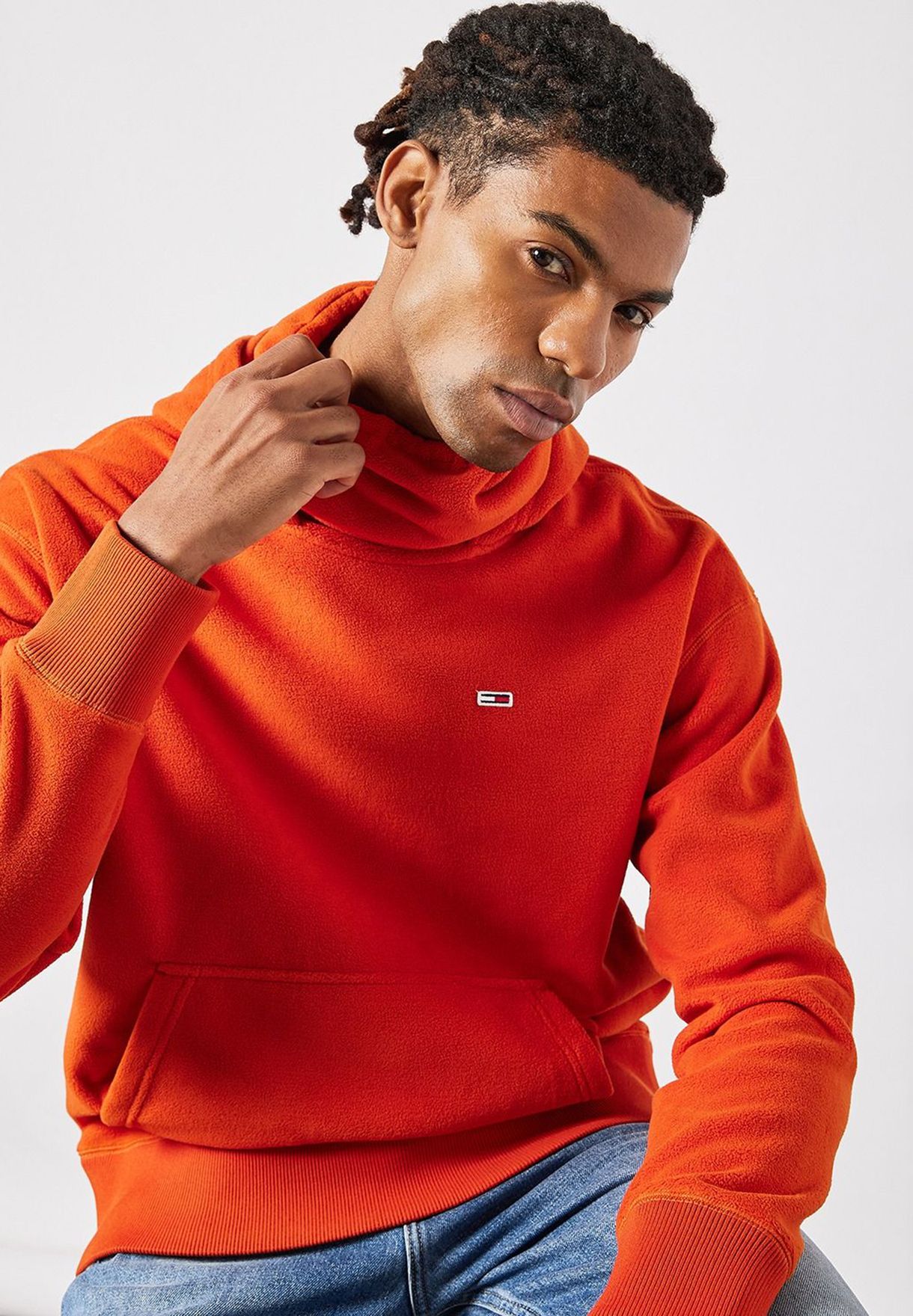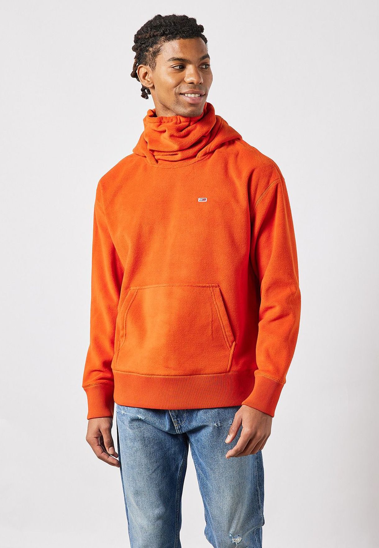 Minkštas ir patogus flisinis poliesterio audinys. Džemperis su kaklu ir gobtuvu. Kengūros kišenė. Elastingi rankogaliai ir apačia.