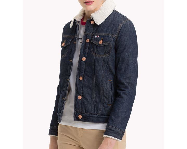„Tommy Jeans Sherpa Trucker“ klasikinio modelio pašiltintas džinsinis švarkas. Tvirtas džinsas, šerpos apykaklė ir vidus. Užsegimas sagomis, su dviem užsegamomis krūtinės kišenėmis, sagomis užsegamais rankogaliais ir firminiu prekės ženklu.